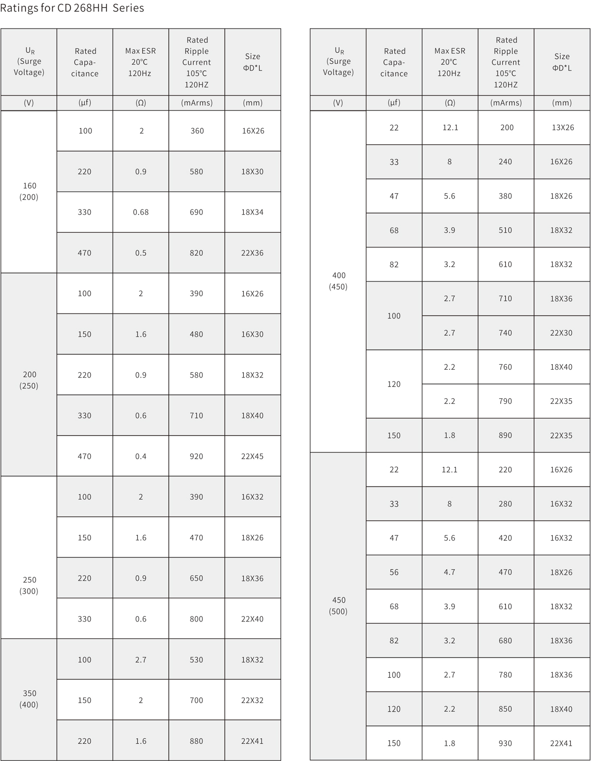 High rated voltage 160V to 450V