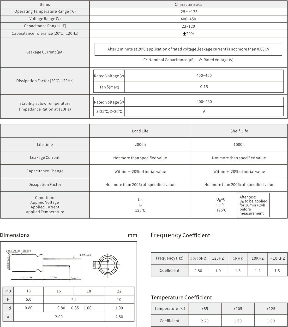 High rated voltage 400V to 450V