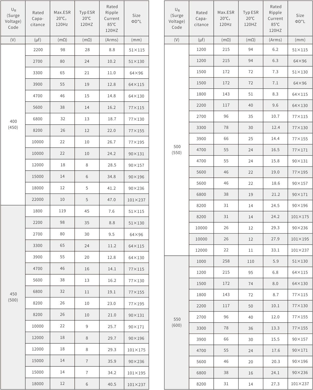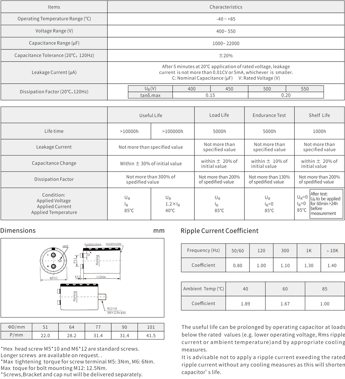 5000h at 85℃
