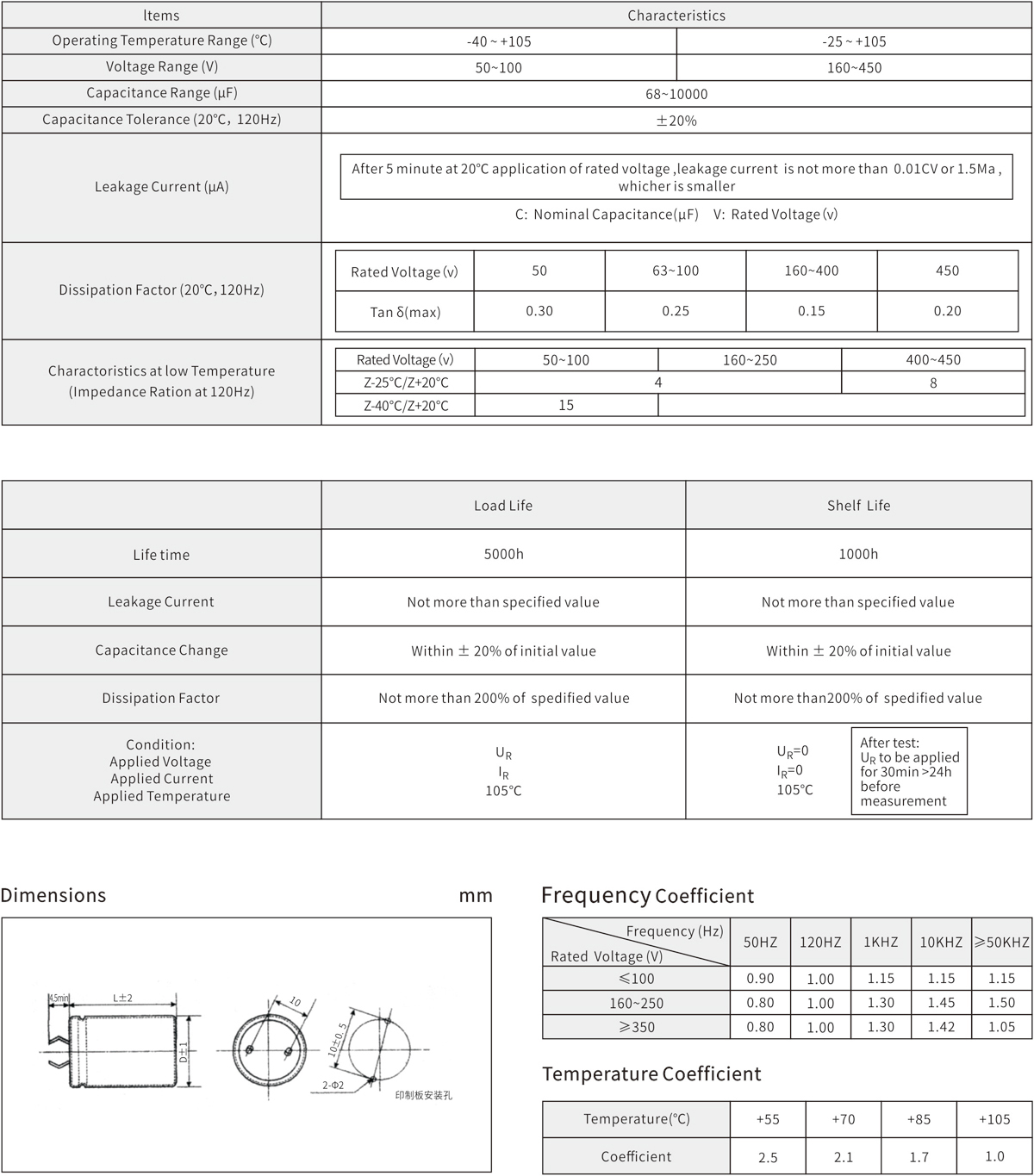 5000h at 105℃